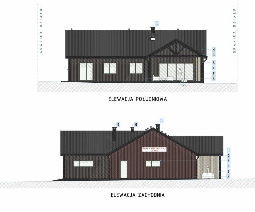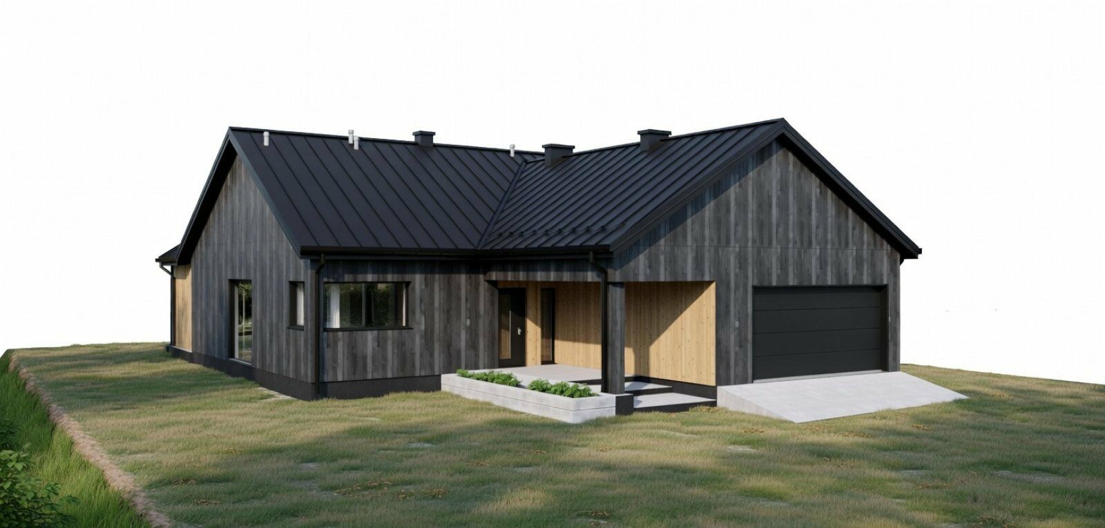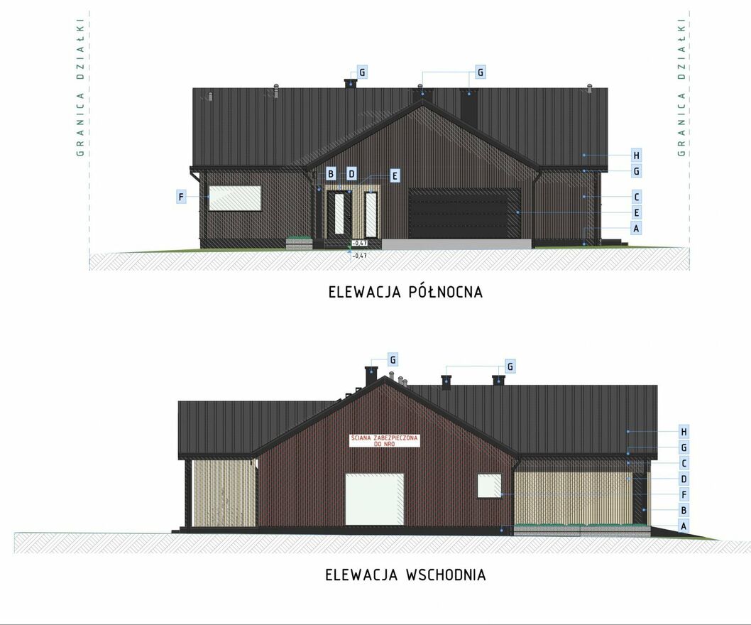 Typ nieruchomości: Budynek wolnostojący parterowy z garażem dwustanowiskowym wbudowanym w bryłę budynku.
